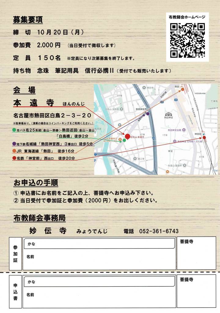 申込方法 名古屋市内の菩提寺までお申し込みください。