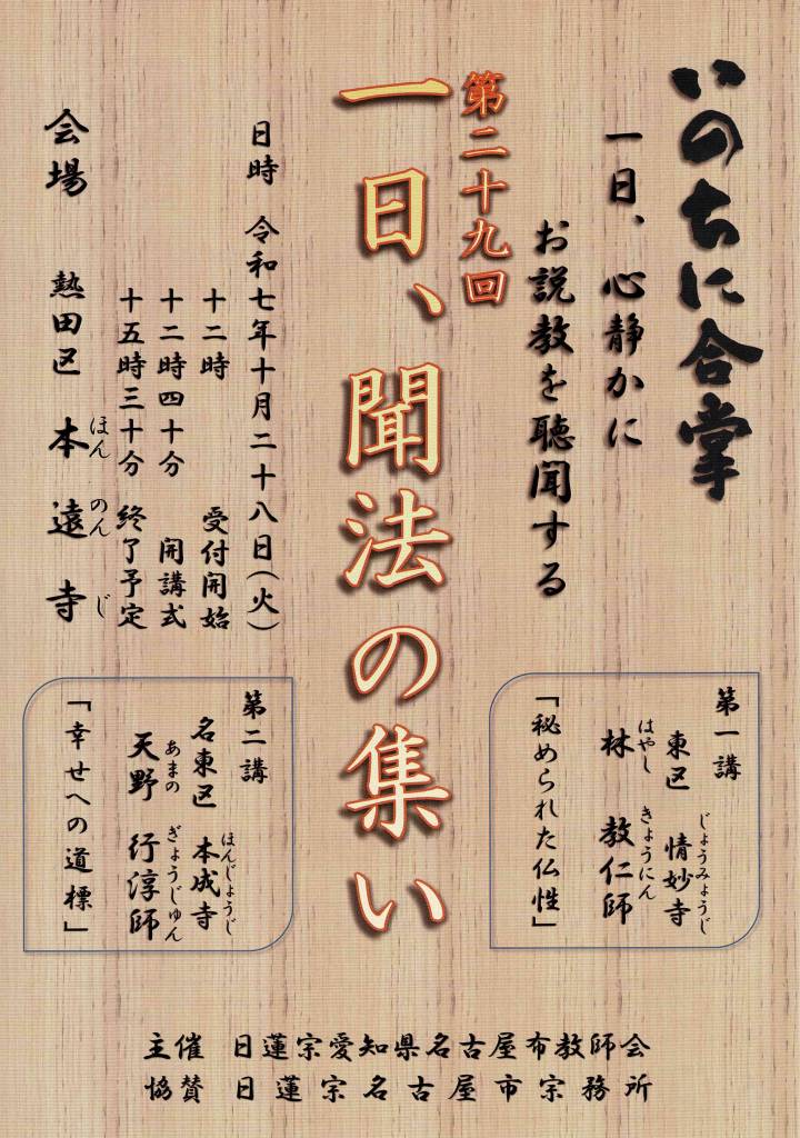 一日、聞法の集いのご案内