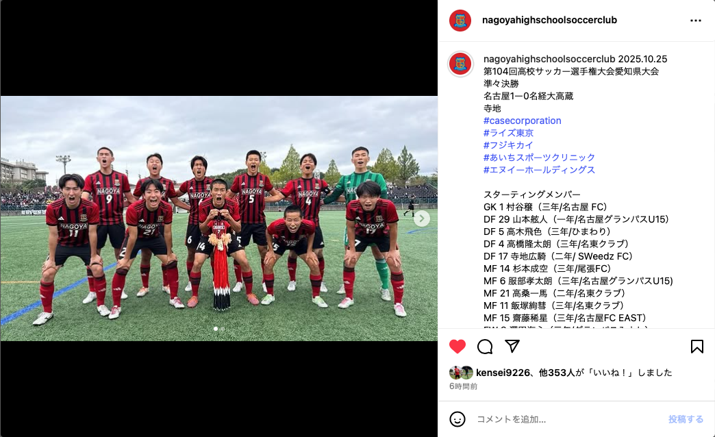 2025-10-25 Home › こぼんちゃん日記 › 全国高校サッカー選手権 愛知県大会 準々決勝 全国高校サッカー選手権 愛知県大会 準々決勝 全国高校サッカー選手権 愛知県大会 準々決勝 対 名経大高蔵高校 前半 0−0 後半 1−0 計 1−0 ベスト4進出 フル出場 次戦は東海学園高校 関連記事 教化センター会議 読誦会に出席 庭門の修繕 仏花を 常設宗務所 落慶法要 聞法の集いの前に 準々決勝 観戦 コメントを残す コメントをキャンセルメールアドレスが公開されることはありません。 ※ が付いている欄は必須項目ですコメント ※ 名前 ※ メール ※ サイト Δ