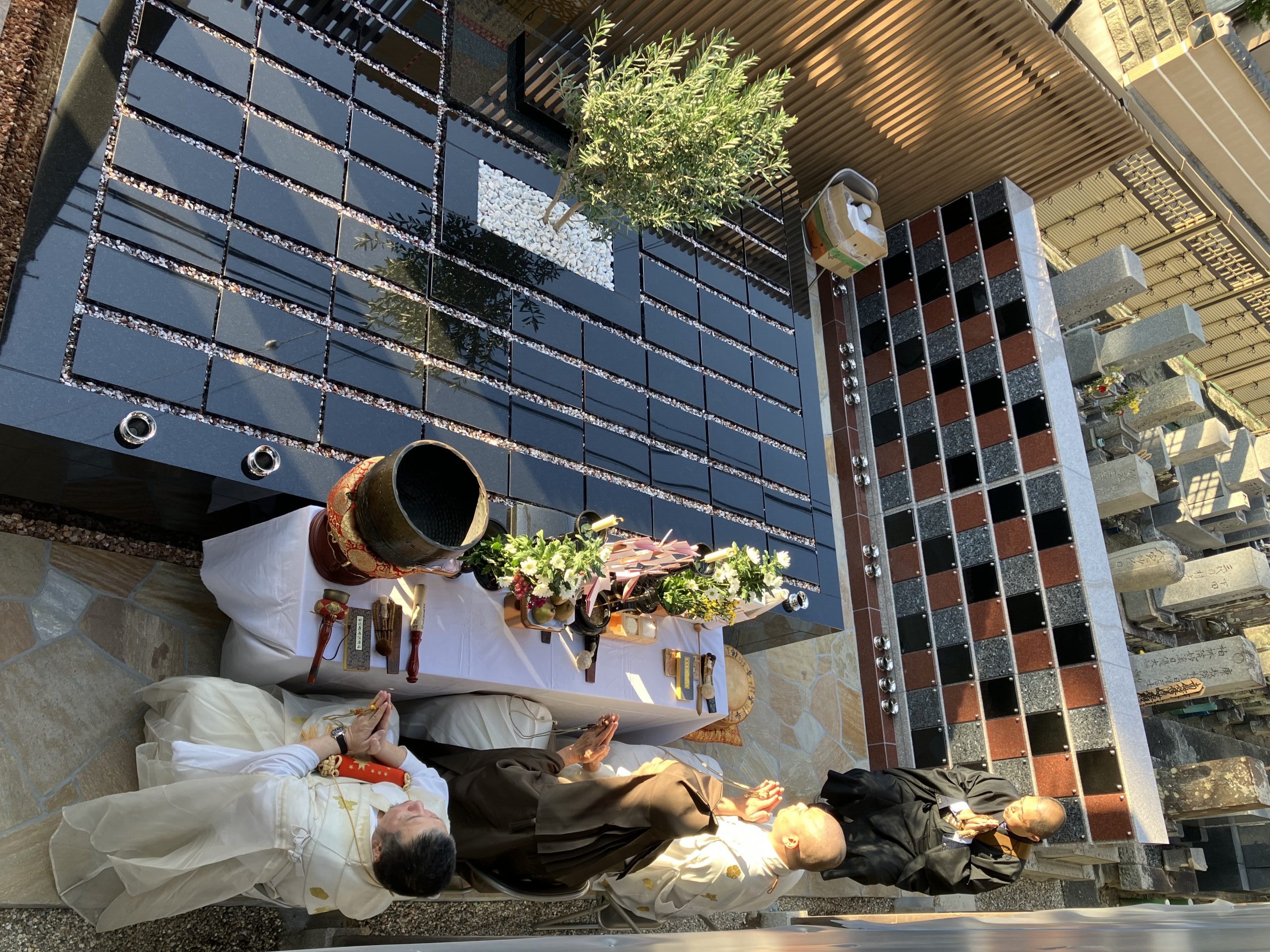2025-10-30 Home › こぼんちゃん日記 › 樹木葬『瑠璃庵』開眼式 樹木葬『瑠璃庵』開眼式 圓乗寺 樹木葬『瑠璃庵』開眼式を 4名の僧侶(修法師3名)にて営みました。 『寶樹』『寶塔』『合祀墓』の開眼と 以前の法界萬霊塔より瑠璃庵『合祀墓』に改葬致しました。 関連記事 アベノマスク 第30回全国勇師法縁愛知大会 さらに準備 18年ぶり 次男のスーパークラス プレートタイプ 選択できます コメントを残す コメントをキャンセルメールアドレスが公開されることはありません。 ※ が付いている欄は必須項目ですコメント ※ 名前 ※ メール ※ サイト Δ