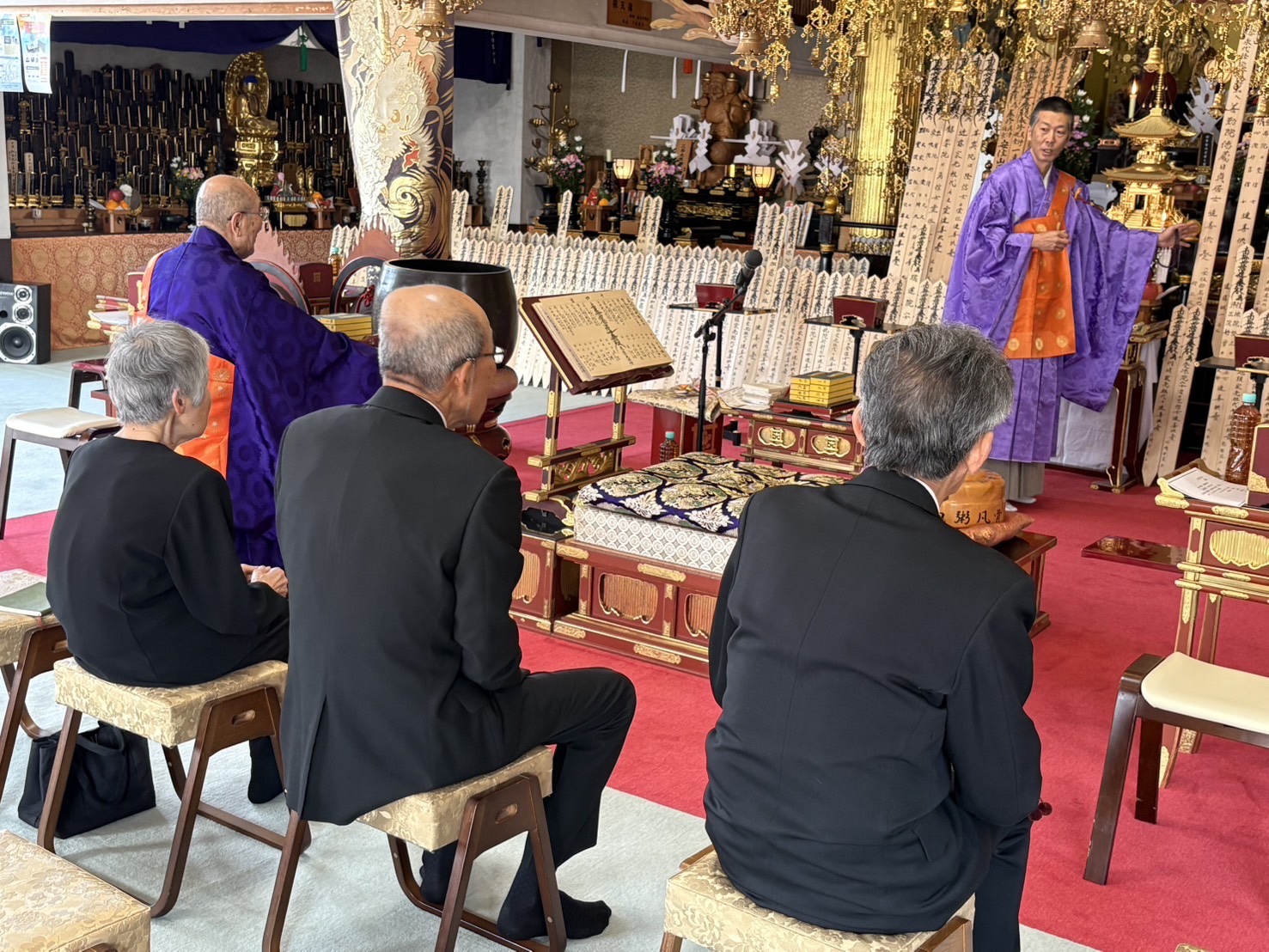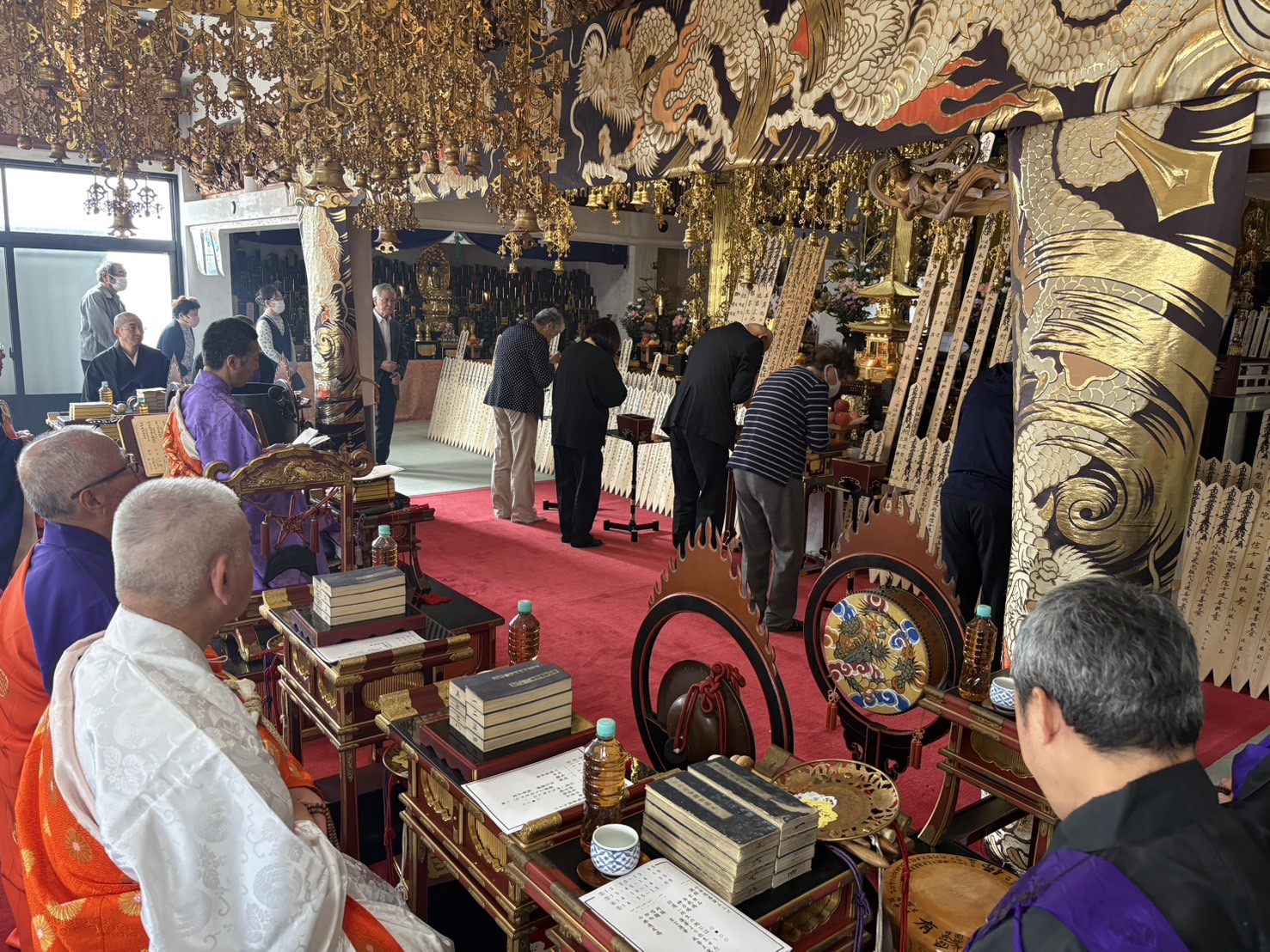2026-04-14 Home › こぼんちゃん日記 › 永代経法要 永代経法要 本日は永代経法要 午前の特別法要を終えて 日蓮大聖人銅像さま前で立教開宗の報恩唱題行。 本年は午前の特別法要の参詣者が少なかったので 唱題行も少数となりました。 午後からの法要では 付卒塔婆回向の後に 5分ほどの法話。 盲導犬支援のサブレの紹介から 懐かしい東区大松のお檀家さんとの思い出ばなしへ。 参詣者は144名と昨年よりも減少。 関連記事 6月 御首題解説 庭の剪定 大薗 諒選手 カキツバタ 1年以上ぶりの布教師会 最終準備 伝道室 打ち合わせ コメントを残す コメントをキャンセルメールアドレスが公開されることはありません。 ※ が付いている欄は必須項目ですコメント ※ 名前 ※ メール ※ サイト Δ