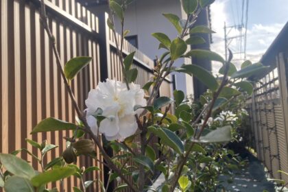 樹木葬の背後のフェンスと石垣の間には 『白色の椿』が咲き誇ります。...