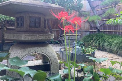 中庭に彼岸花。 境内の彼岸花はまだまだの様子。...